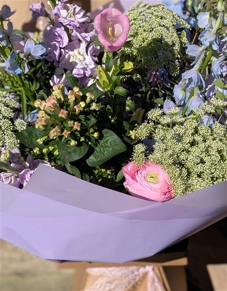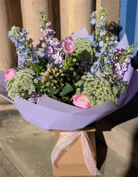 Step into our Elgin cottage garden with this dreamy bouquet. πΈ Soft lavender Delphiniums, blushing pink Ranunculus, and clouds of delicate Ammi come together in a symphony of pastel hues and airy textures πΈπ©΅ Wrapped in lilac paper and tied with a touch of lace, it's a little piece of garden magic, straight from our door to yours. Bring a touch of Scottish charm and English garden romance into your home today. β¨