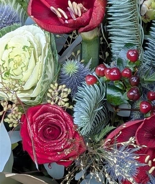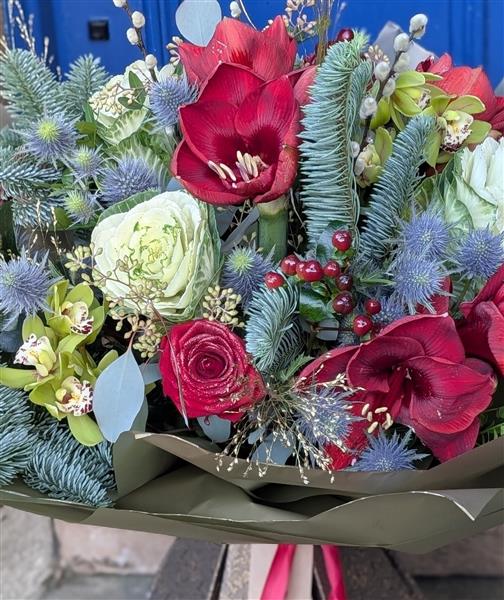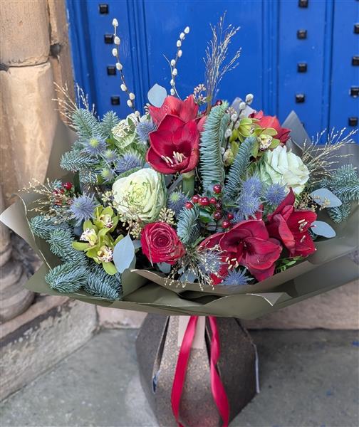 Each flower and stem was hand-picked by our florists, bringing all their individual favourites together into one show-stopping arrangement. It’s bursting with personality, passion, and holiday spirit!