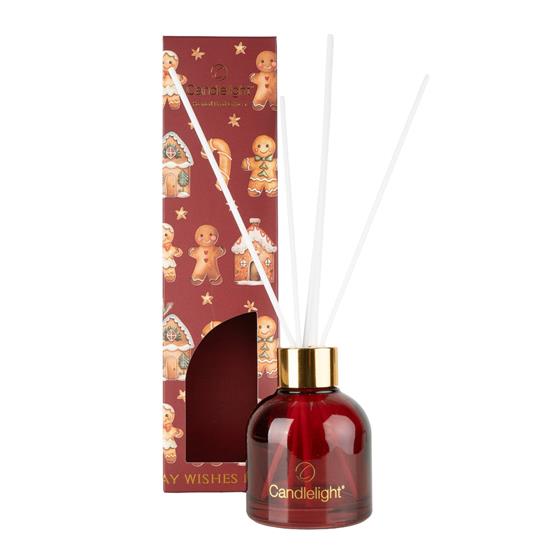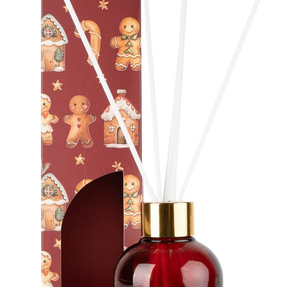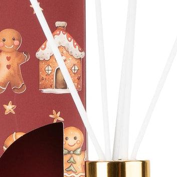 Infuse your home with the warm, comforting aroma of the 100ml Reed Diffuser Gingerbread Kisses, a festive fragrance that captures the sweet and spicy scent of freshly baked gingerbread. Beautifully presented in a rich red glass bottle with a golden lid and elegant white reeds, this diffuser is as decorative as it is fragrant. The charming packaging, adorned with playful gingerbread figures and Christmas motifs, makes it a delightful seasonal addition to any room or a thoughtful gift for loved ones. Perfect for creating a cosy, inviting atmosphere, it offers a flame-free way to enjoy long-lasting festive fragrance throughout your home.