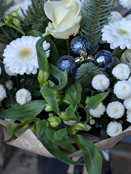 Our Let it Snow bouquet is designed to evoke a sense of winter wonder and is a popular choice for a Festive gift.