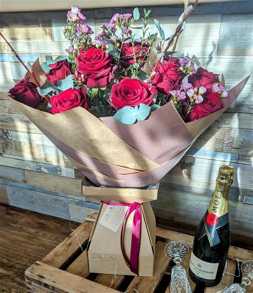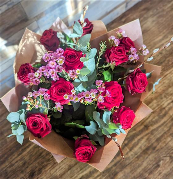Combined with a seasonal filler and lush Foliage, this bouquet is the perfect gift for Valentines Day!
