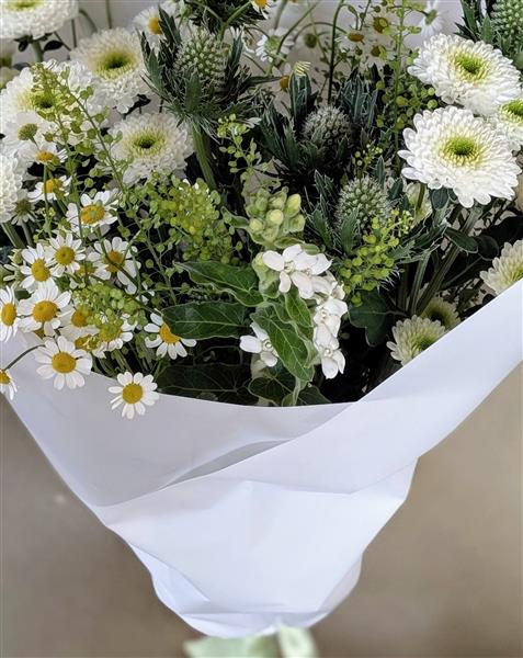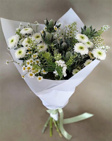A unique Handtied bouquet hand crafted from seasonal blooms delivered to you or a loved one.