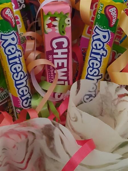 The picture is for website display purposes only and will vary depending on the time of the year and season, e.g. Red, Gold, White for Christmas, Yellow for Summer, Mixed colours for Spring. Depending on availability the sweets may vary from picture.