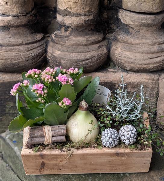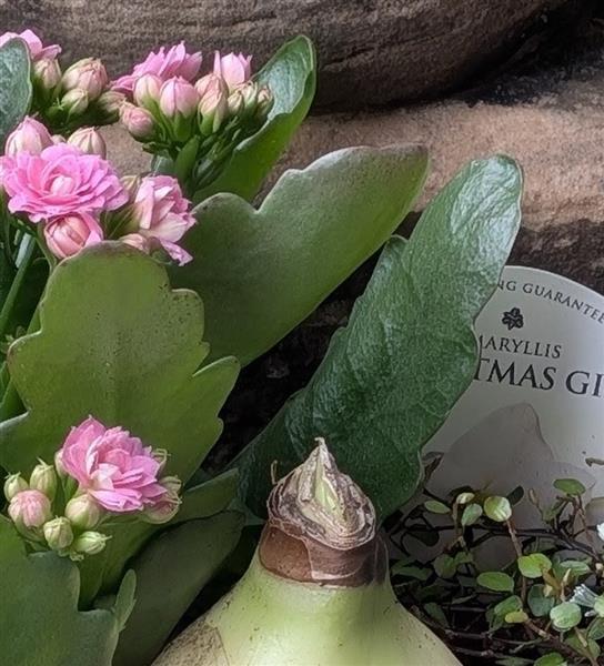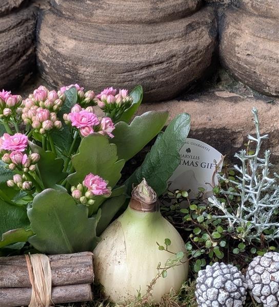 βBring the magic of winter into your home or outfoors with our stunning new planter, specially curated to add warmth and charm to any space. Featuring a beautiful Kalanchoe, a promising Amaryllis bulb, and festive accents, it's the perfect way to embrace the season!