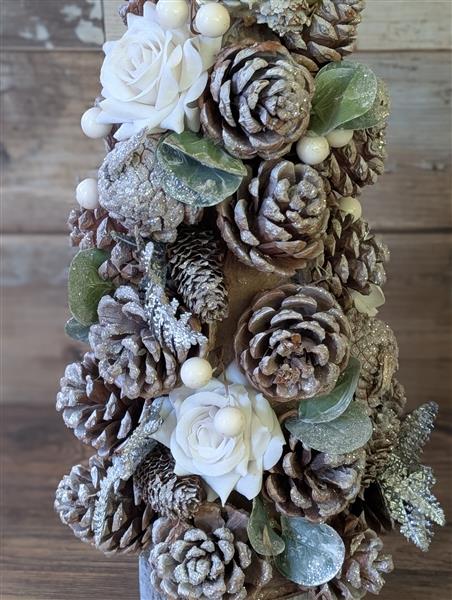 Handcrafted with beautiful snowy pinecones, delicate gilded accents, and festive greenery, our Winter Whites Topiary is designed to dazzle throughout the season.