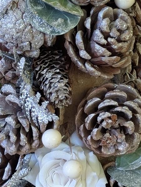 Elevate your festive decor with this stunning centrepiece that blends rustic charm with elegant sparkle. Perfect for adding a touch of natural, rustic elegance to any room!