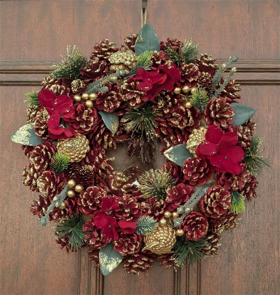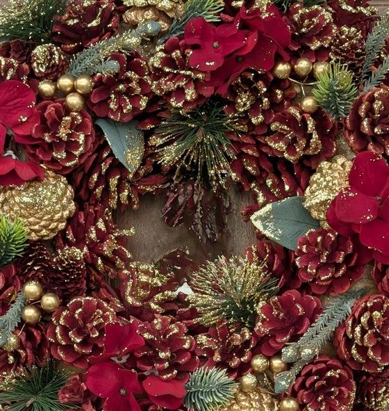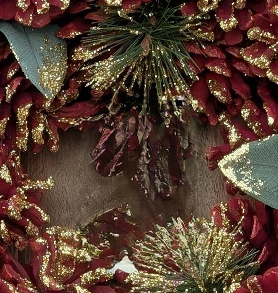 Isn't this wreath simply breathtaking? ❤️🌲 Adorned with rich burgundy pinecones, shimmering gold accents, and delicate winterberries, it's the perfect way to bring a touch of elegance to your holiday decor.